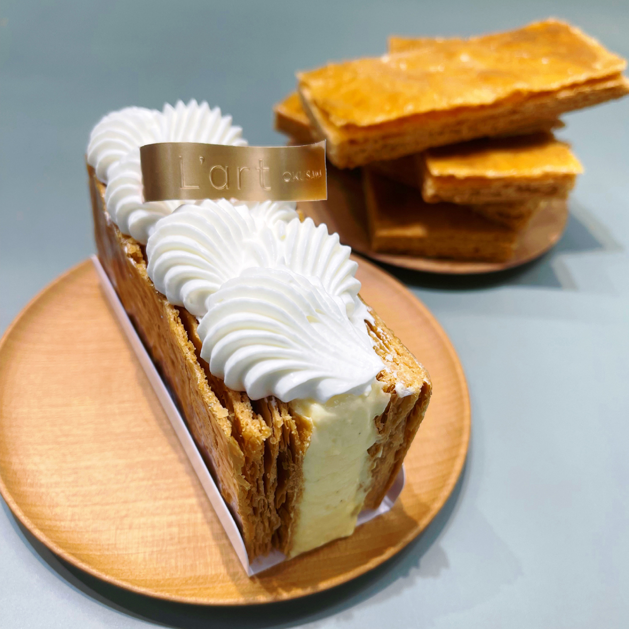 丁寧に時間をかけて折り込んだこだわりのパイ生地、甘さ控えめなディプロマットクリーム、北海道産生クリーム、余計なものをそぎ落とした、ただただ美味しいミルフィーユ。